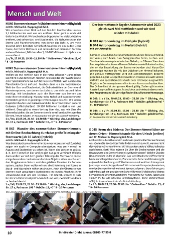 Wollen Sie mal wirklich weit in die Ferne schauen? Dann gehen Die genaue Vortragsfolge wird mit Semesterbeginn bekannt