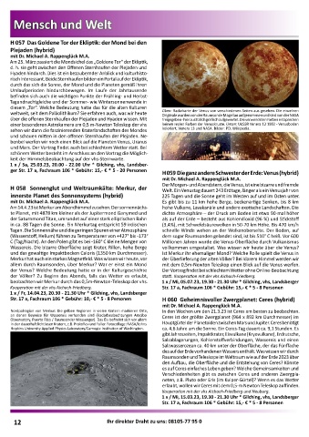 der Venus? Welche Bedeutung hatte er in der Kulturgeschichte Der Vortrag findet bei schlechtem Wetter ohne Online-Beobachtung