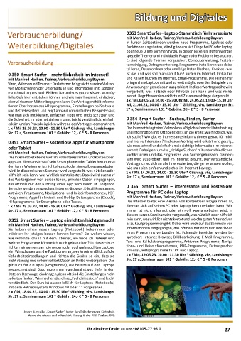 nicht ständig und unkontrolliert Daten an Dritte weitergeben. Das Str. 17 a, Seminarraum 101 * Gebühr: 12,- € * 5 - 8 Personen
