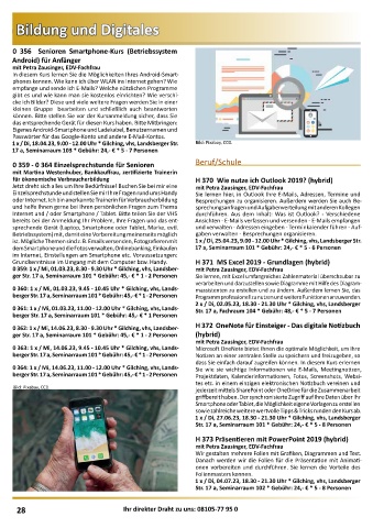 0 359: 1 x / Mi, 01.03.23, 8.30 - 9.30 Uhr * Gilching, vhs, Landsber- mit Petra Zausinger, EDV-Fachfrau