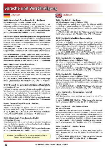 0 400 Deutsch als Fremdsprache A1 - Anfänger 0 420 Englisch A1 - Anfänger