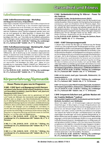 und Gesundheit, Kursleiterin „Sport für Ältere“ und „Sport und Str. 17 a, Fachraum 008 * Gebühr: 103,- € * 5 - 8 Personen